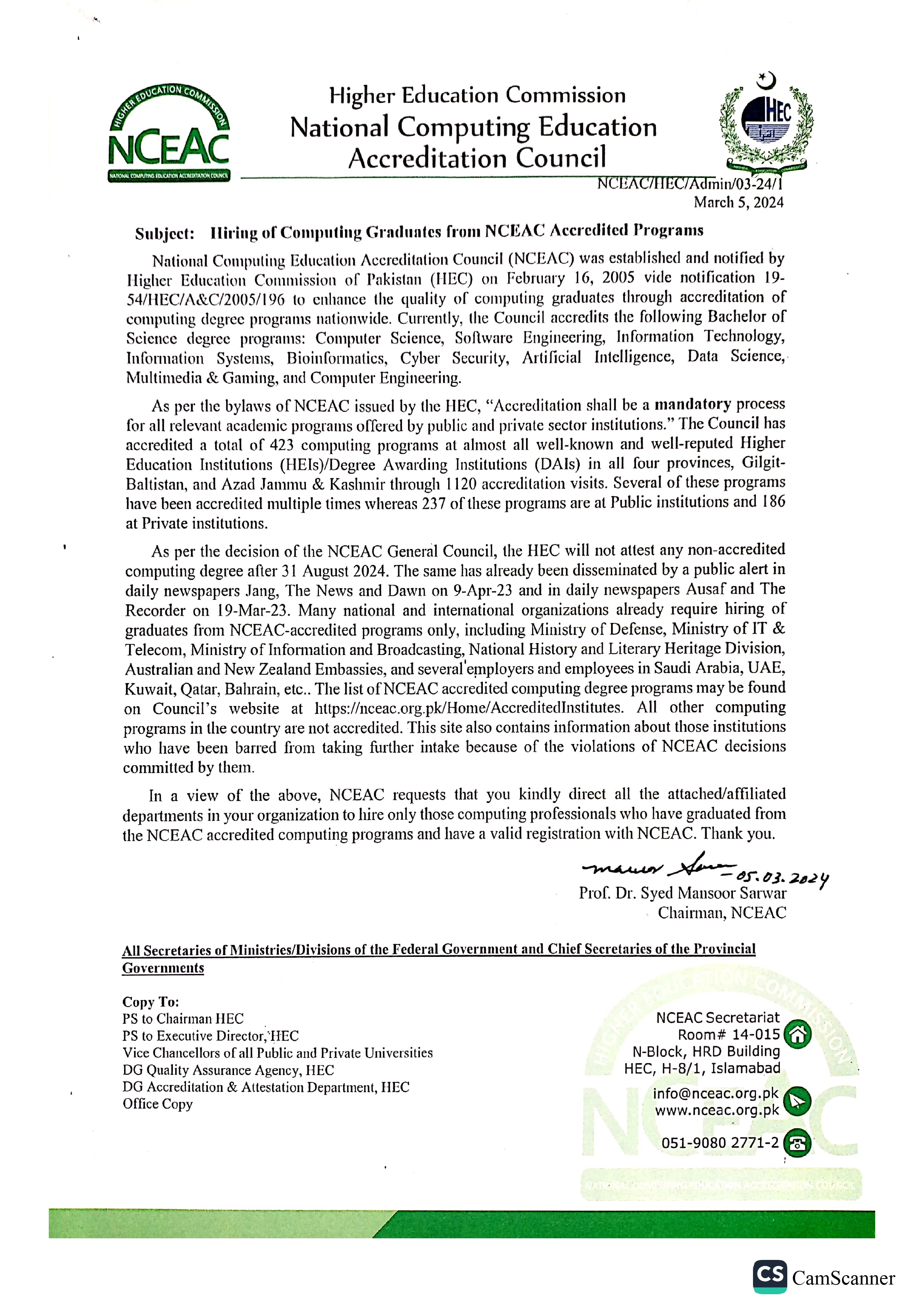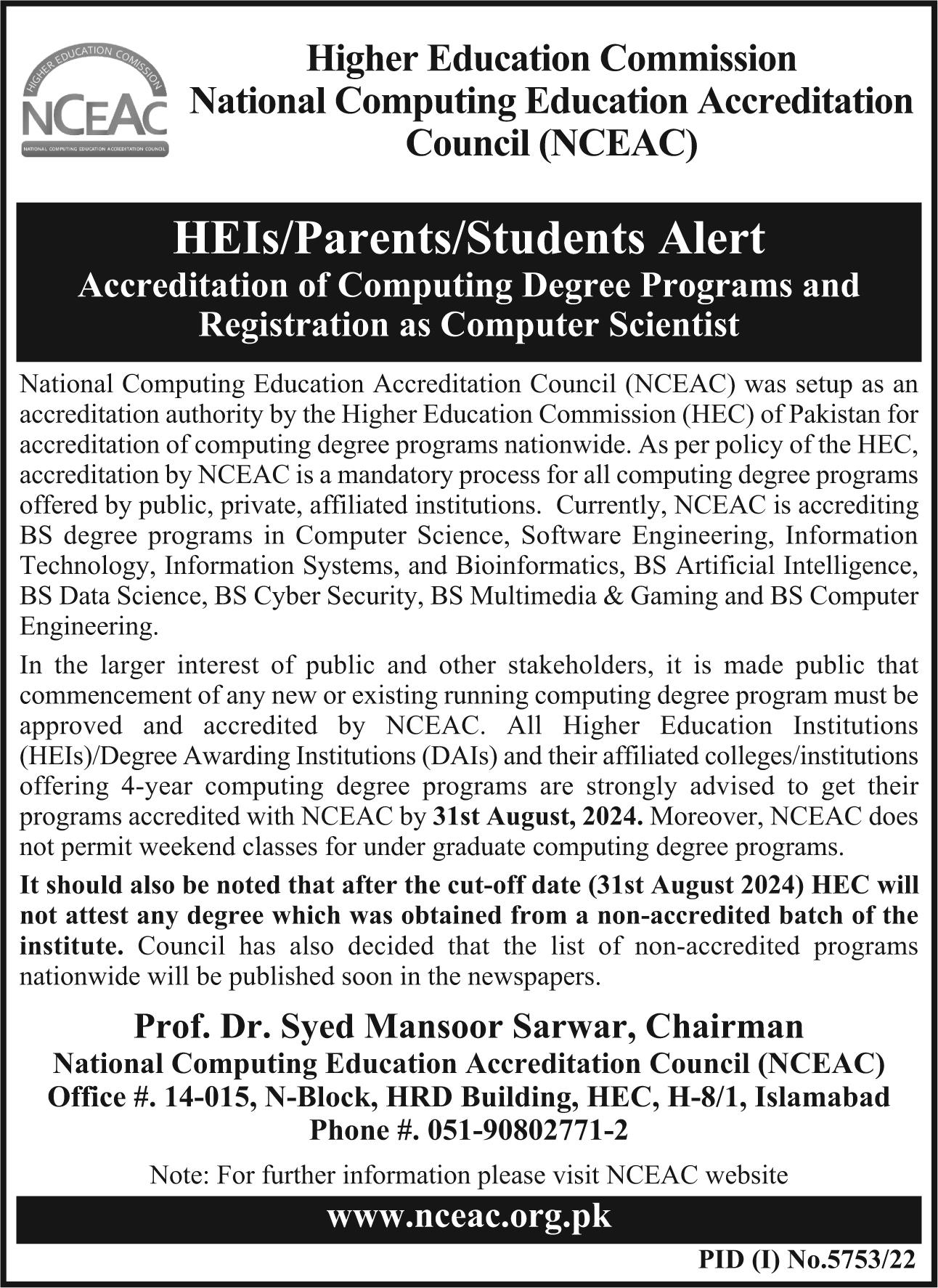 Hiring of Computing Graduates from NCEAC Accredited Programs Alert